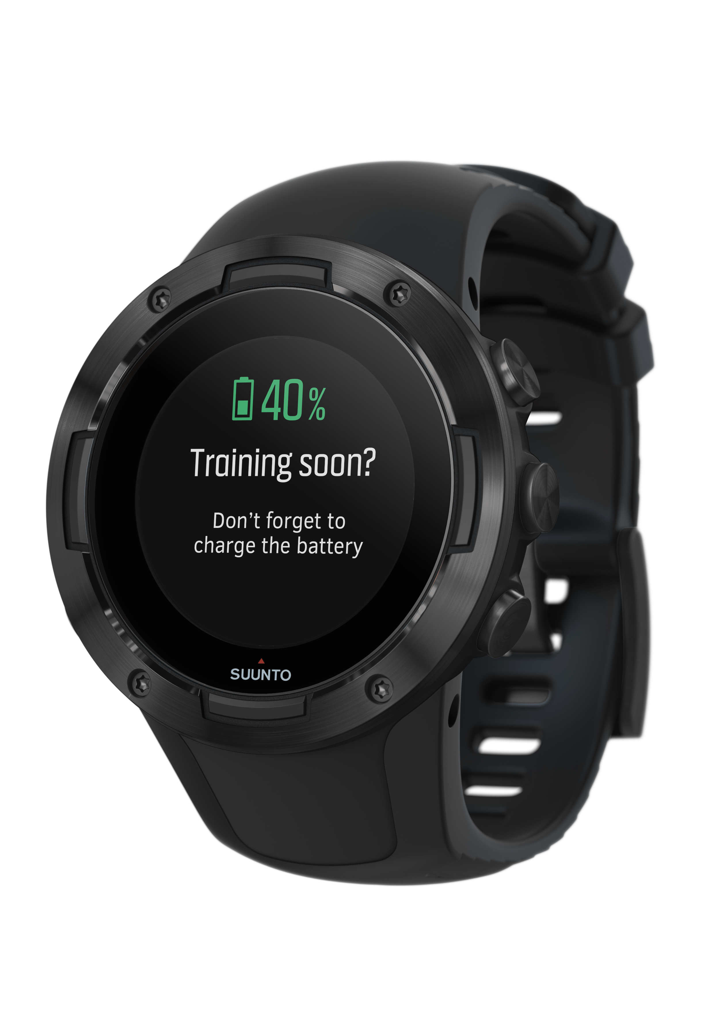 SS050299000 – SUUNTO 5 G1 ALL BLACK – Perspective View_charge reminder in the watch